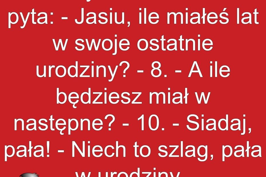 Jasio przychodzi do szkoły i pyta się nauczycielki: -Czy ukarałaby… Czytaj Dalej »Nie zrobiłem pracy domowej